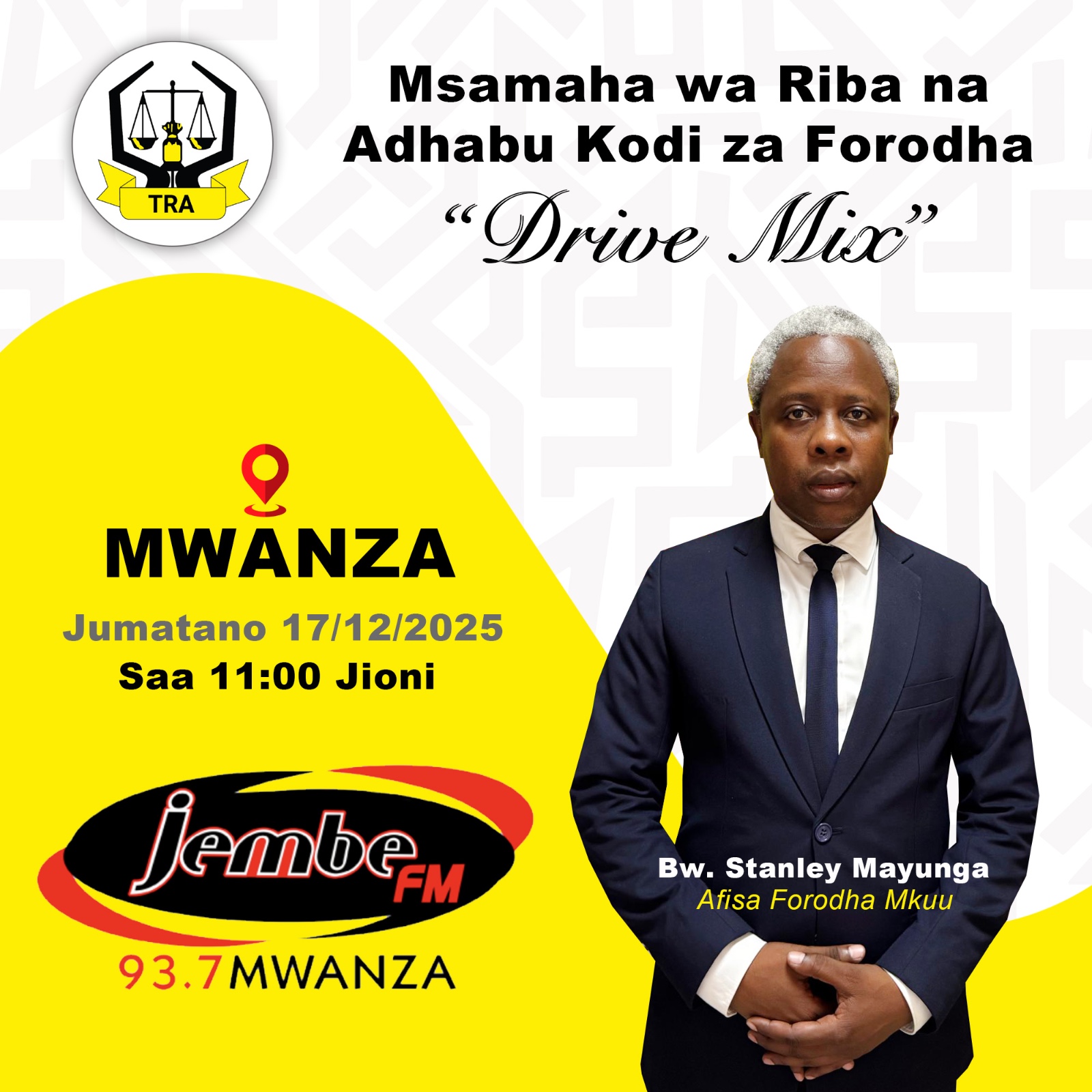 Katika kuhamasisha matumizi ya msamaha wa riba na adhabu unaoelekea kukoma Desemba 31 mwaka huu Mamlaka ya Mapato Mkoa wa Mwanza imeandaa kipindi cha radio ili kuwaelimisha na kuongeza hamasa kwa wanu . . .