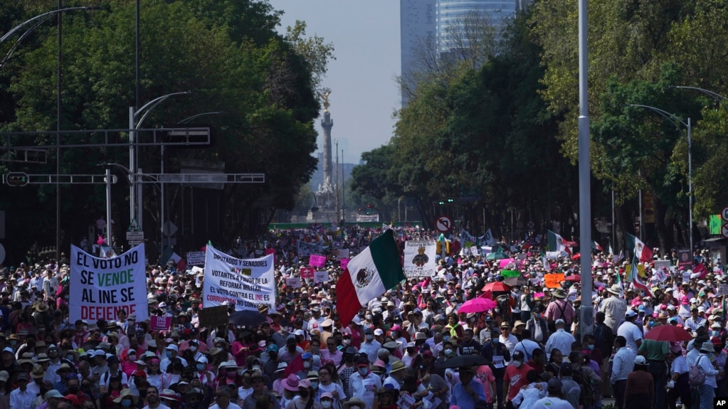 Maelfu ya watu waliingia katika mtaa muhimu wa jiji kuu la Mexico, kuandamana kupinga mapendekezo ya rais Andres Manuel Lopez Obrador ya mabadiliko ya tume ya uchaguzi. Maandamano hayo ni makub . . .