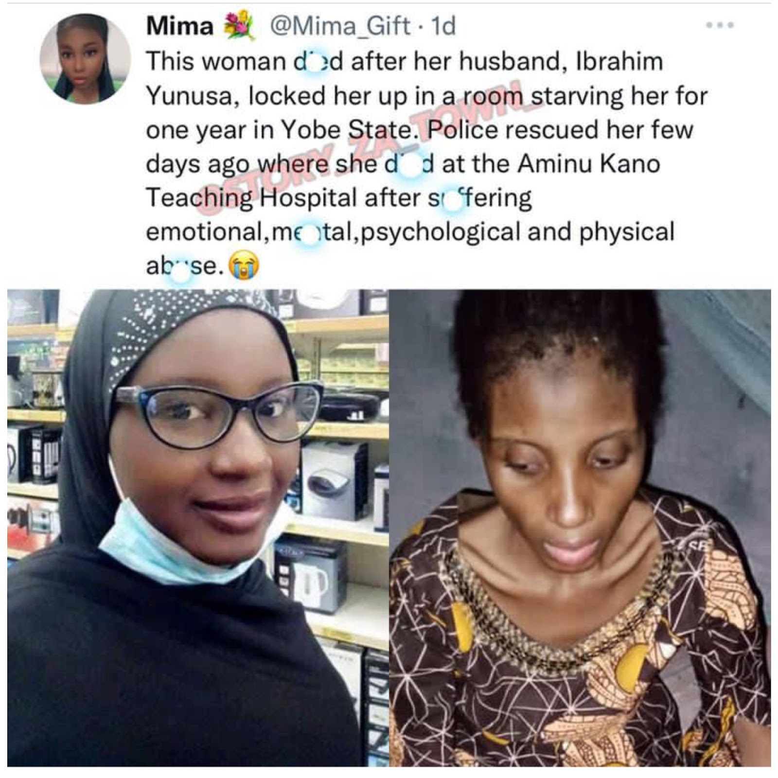 Huko Nigeria Mwanamama Alietambulika Kwa Jina La Sadiya amefariki baada yakufungiwa ndani na mume wake mwaka mzima Huku Akipata chakula Kidogo.Imaelezwa Mama Huyo Wa Watoto Wanne Alikua Anafungiwa . . .